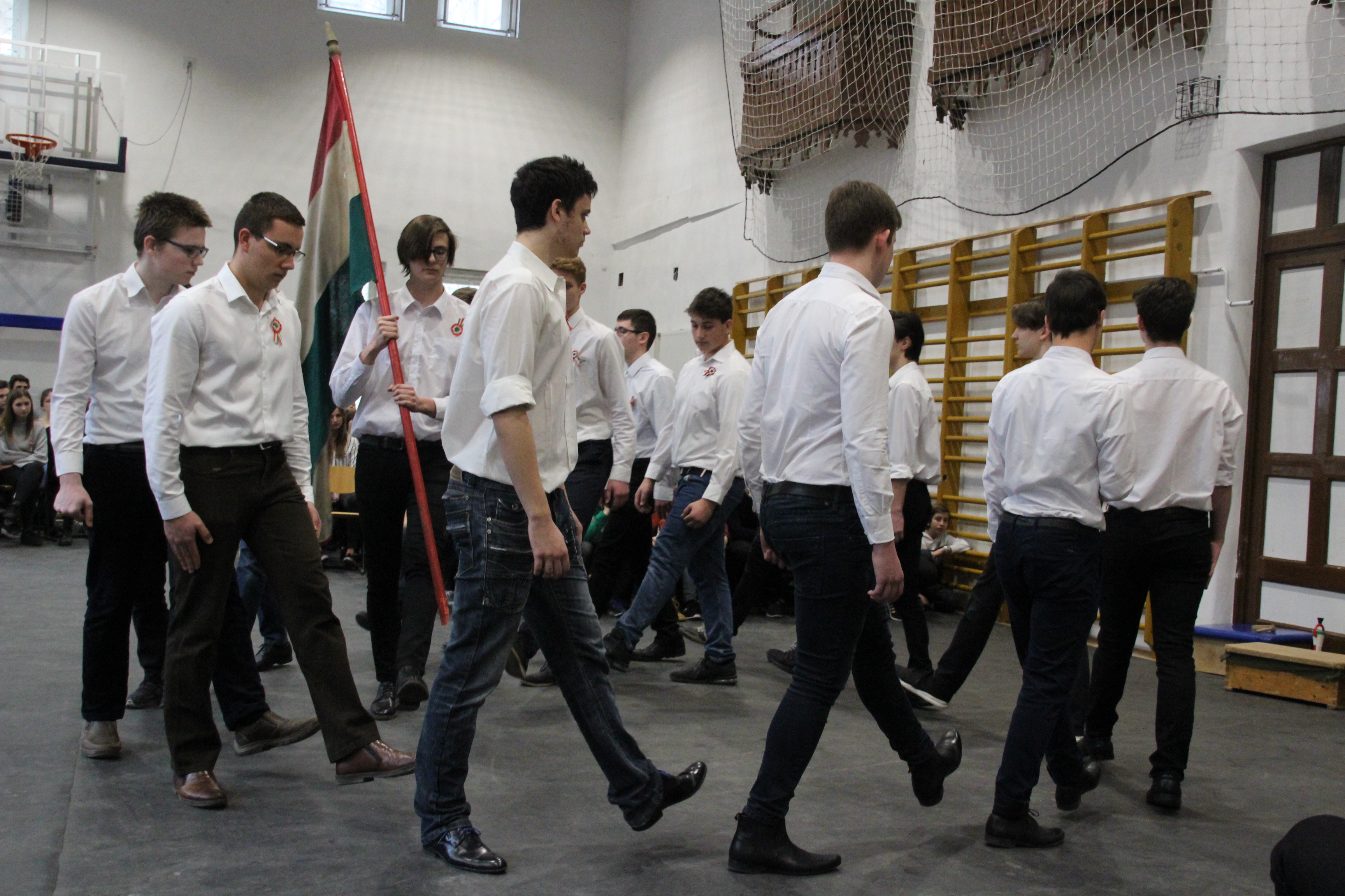 A tornateremben az egész gimnázium megnézte Molnár György tanár úr rendezésében a 11. d osztály frappáns, pörgős, a megszokott elemeket teljesen mellőző, alapvetően az érzékszervekre és érzelmekre ható drámapedagógiai elemekre építő műsorát. Majd osztályonként felkerestünk két-két budapesti emlékhelyet. Ezek egyike a forradalomhoz, a másik a szabadságharchoz kapcsolódott. Az egyik Pesten volt, a másik Budán, és az egyik ismertebb, a másik rejtettebb volt. Így volt akik a Pilvax kávéház (helyét) keresték fel, voltak a Batthyány örökmécset, míg mások Görgei szobrát. De az iskola közelében lévő emlékekhez is eljutottunk: Tóth Ágoston emléktáblájához, Gábor Áron sajátos alakú emlékművéhez, vagy Kovács J. honvéd sírjához.