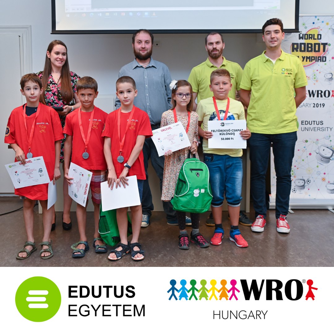 A MOLNÁR MÁTÉ, VAN DER SCHAFT BERTALAN és KOREN MIHÁLY 3.a osztályos diákok alkotta csapat a WRO-World Robot Olympiad magyarországi döntőjében Regular WeDo kategóriában diadalmaskodott. A csapat elnyerte a Digitális Jólét Program felajánlásából a"Feltörekvő csapat különdíjat" is."