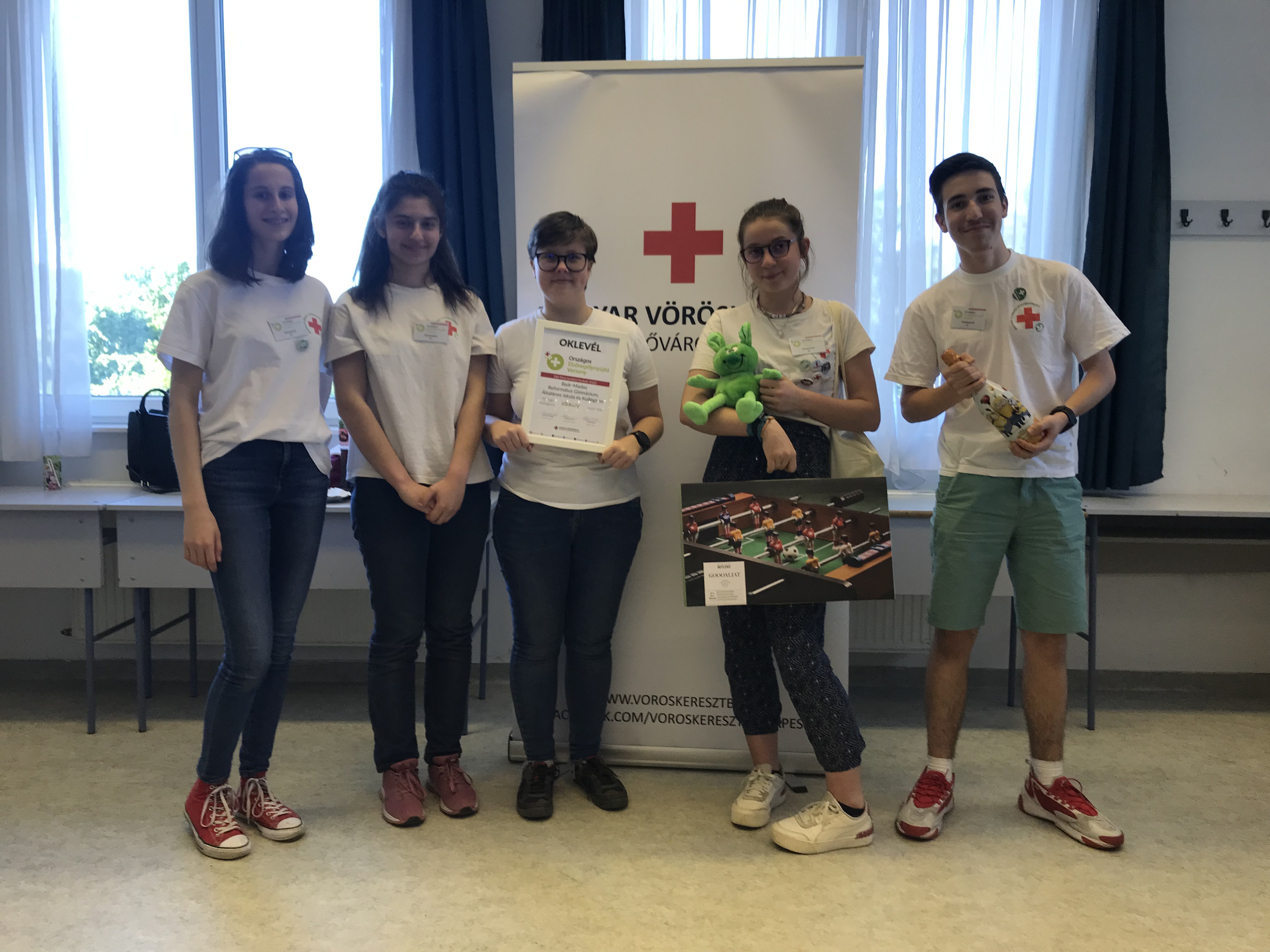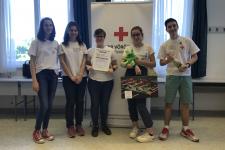 A Magyar Vöröskereszt által szervezett Országos Elsősegélynyújtó Verseny budapesti döntőjébe iskolánk csapata - NAGY ZSÓFIA, SUBA CSENGE, BARTHA LILLA, SZŰCS CSENGE(11.d) Bereczki Máté(9.b)- bejutott, ahol MÁSODIK helyezést ért el.