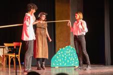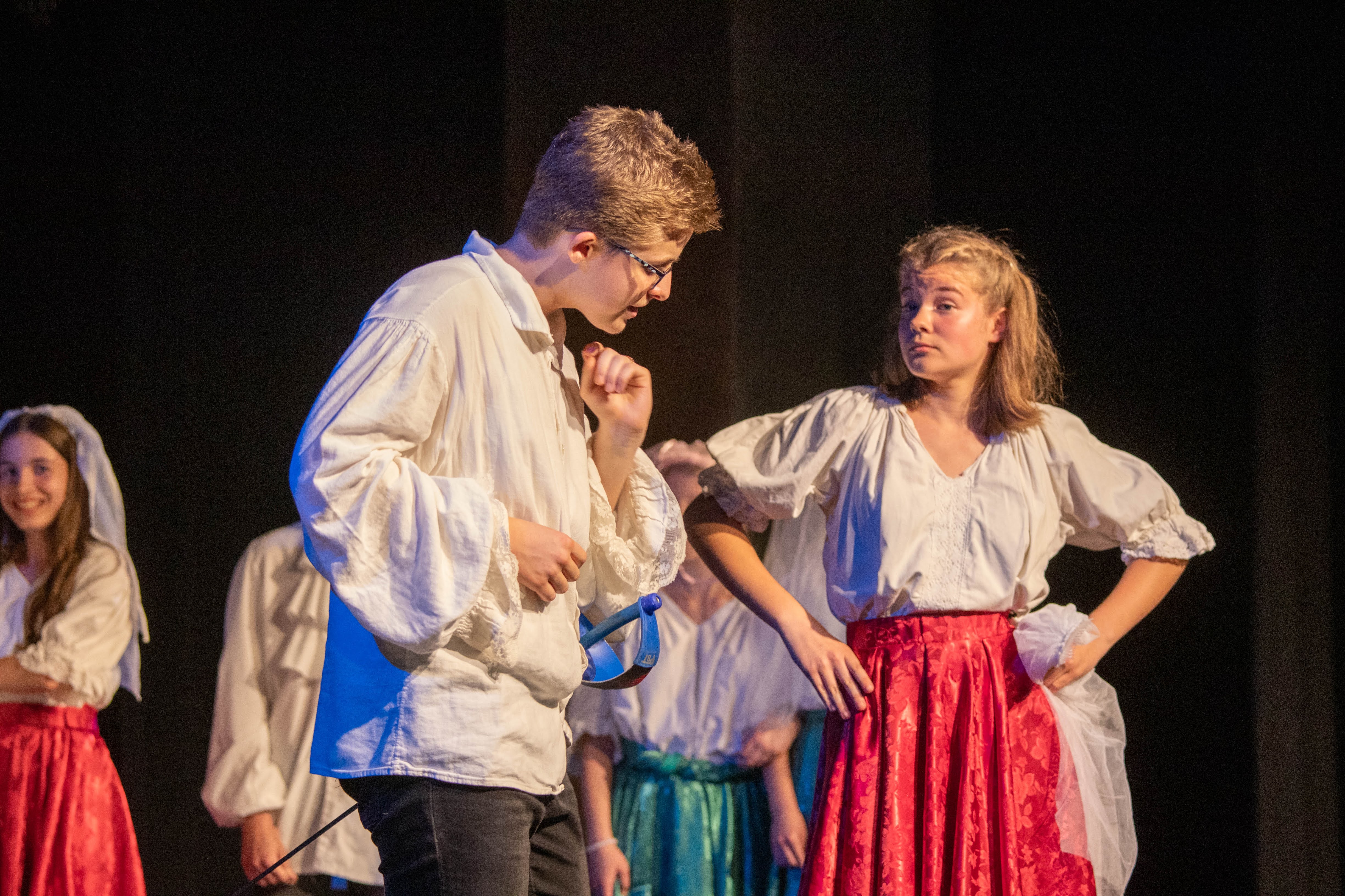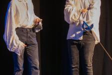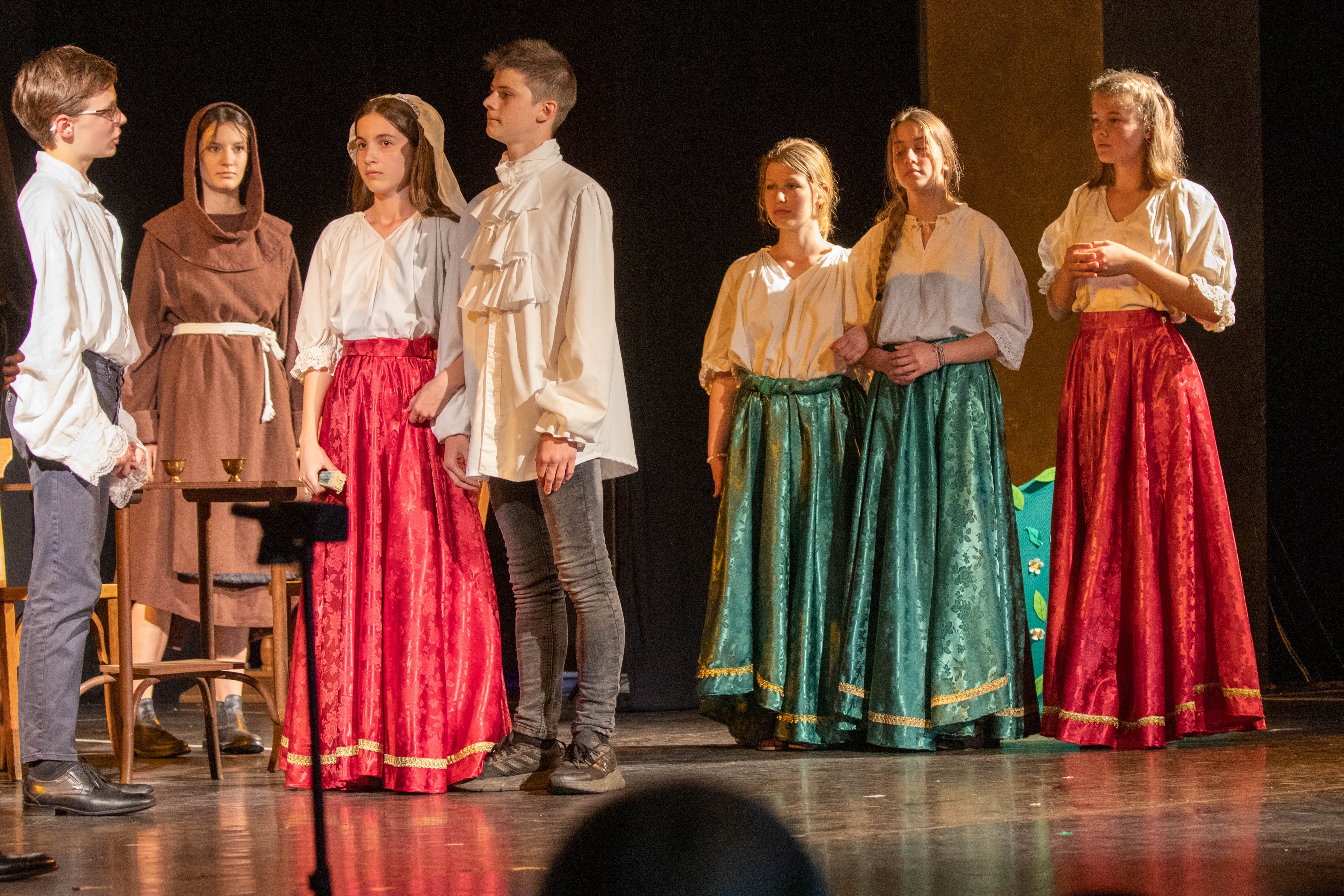 A 8. b magyaros csoportja már februárban megkezdte az előkészületeket. A darabot maguk választották, és ők maguk adaptálták a csoport összetételére. A próbák nagyon jó hangulatban teltek. A nehéz és hosszú szöveg nem fogott ki rajtuk, gyorsan megtanulták beszélni a darab nyelvét. A tanév utolsó két hónapja Shakespeare-é volt, hiszen a Romeo és Júlia tananyagként összetalálkozott a Sok hűhó semmiért című – általunk nagyon megszeretett – művel. A főszereplők parádésan hozták a karaktereket.