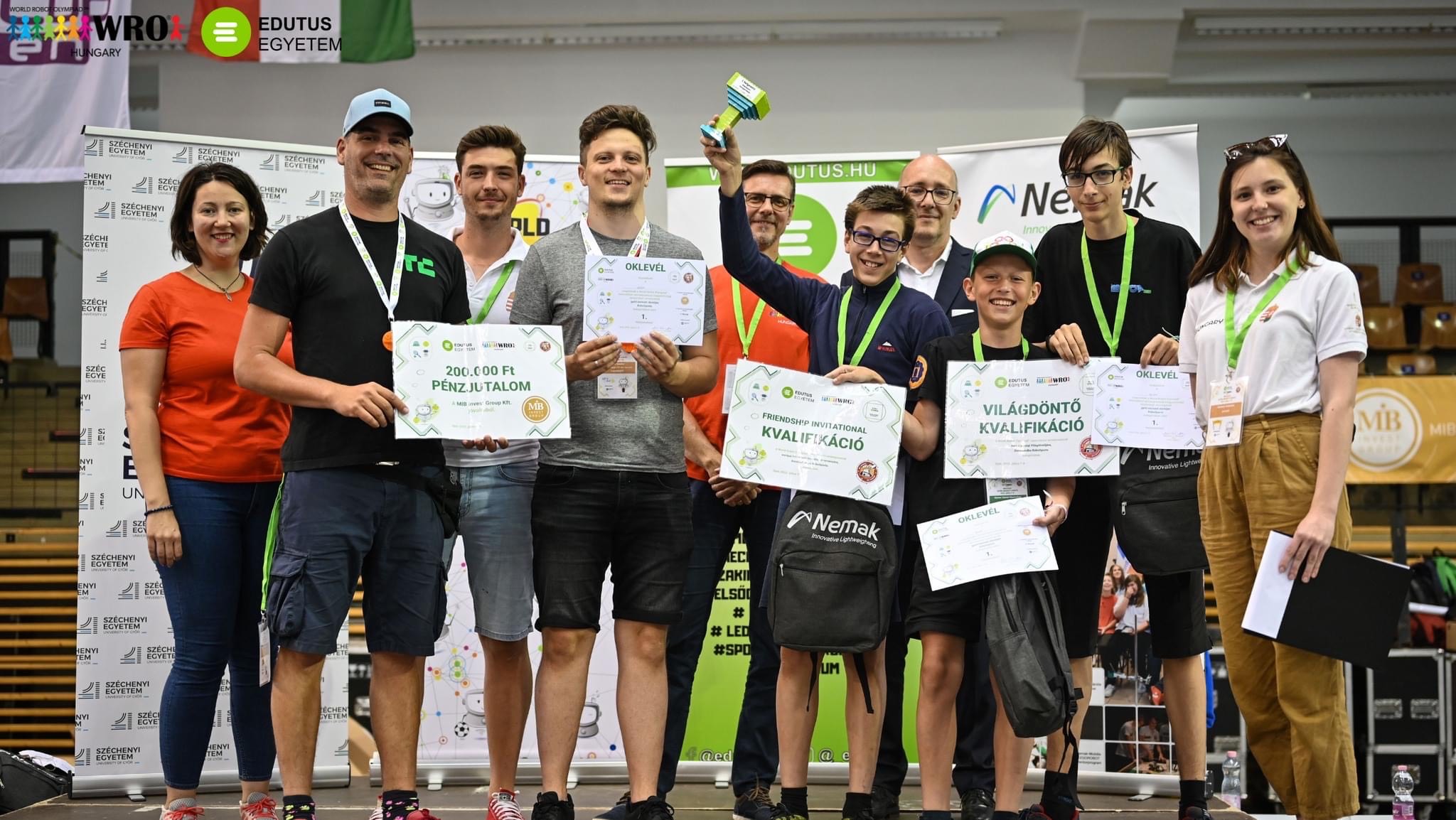 A GONDA BENEDEK(9.d), GONDA BOTOND(7.b) és KOREN DÁNIEL(7.b) alkotta robotika csapat országos ELSŐ HELYEZÉST szerzett a WRO (World Robot Olympiad) magyarországi döntőjében RoboSports kategóriában. Így kvalifikációt szereztek a WRO németországi világdöntőjére.