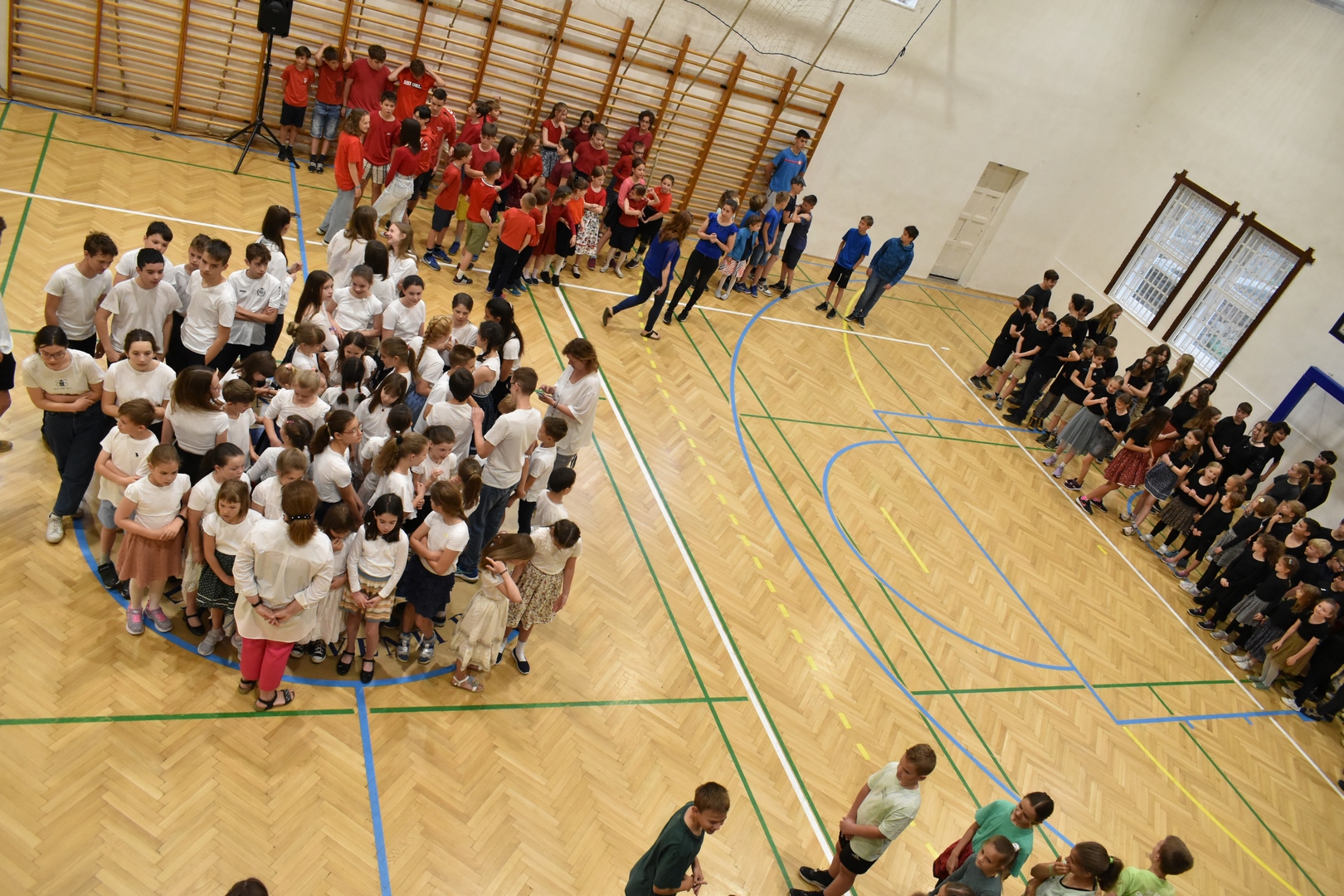 Az osztályokon belül is különböző színekbe öltöztek a gyermekek, szimbolizálva az egykor Magyarországtól elcsatolt területeket.