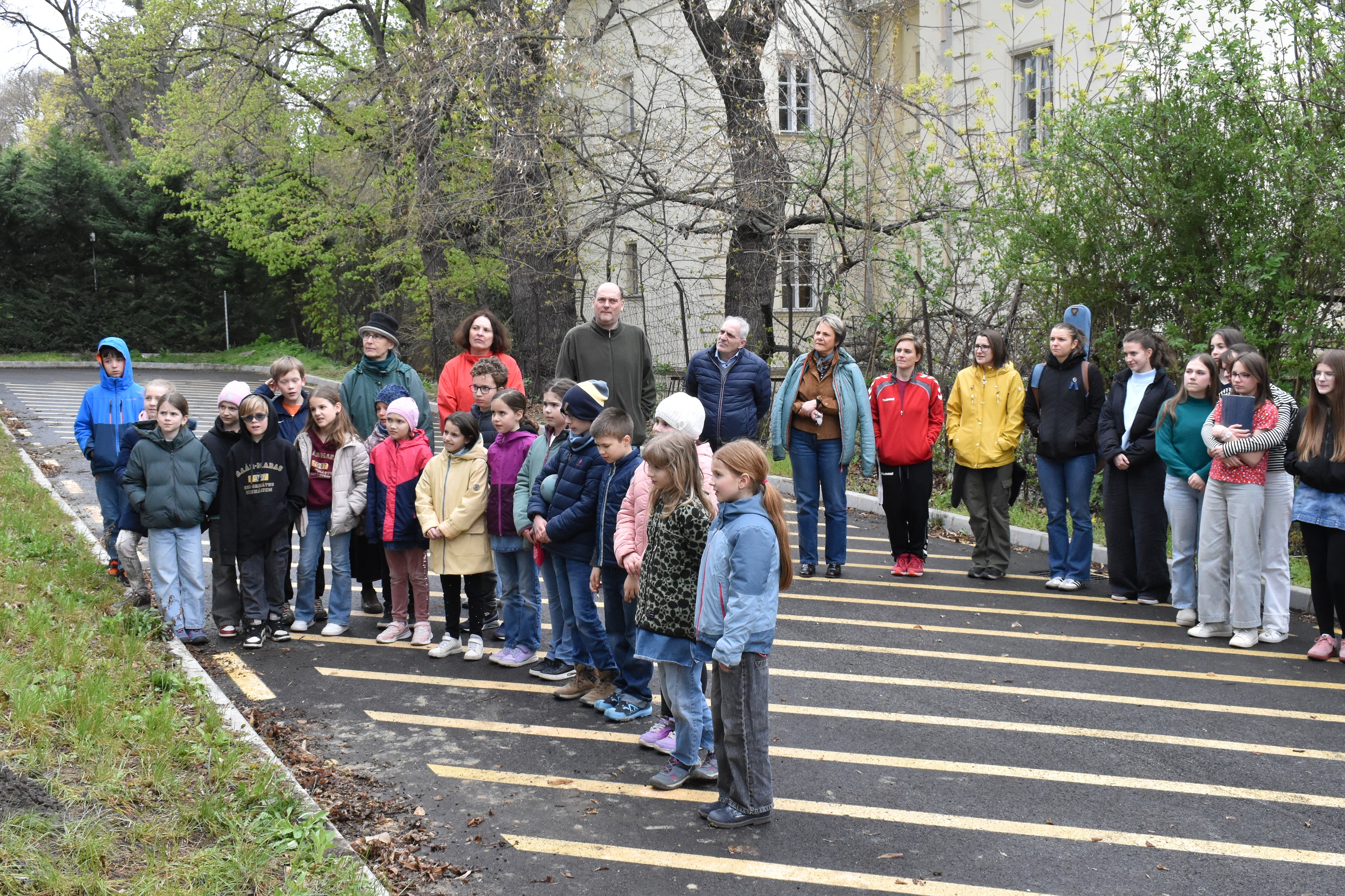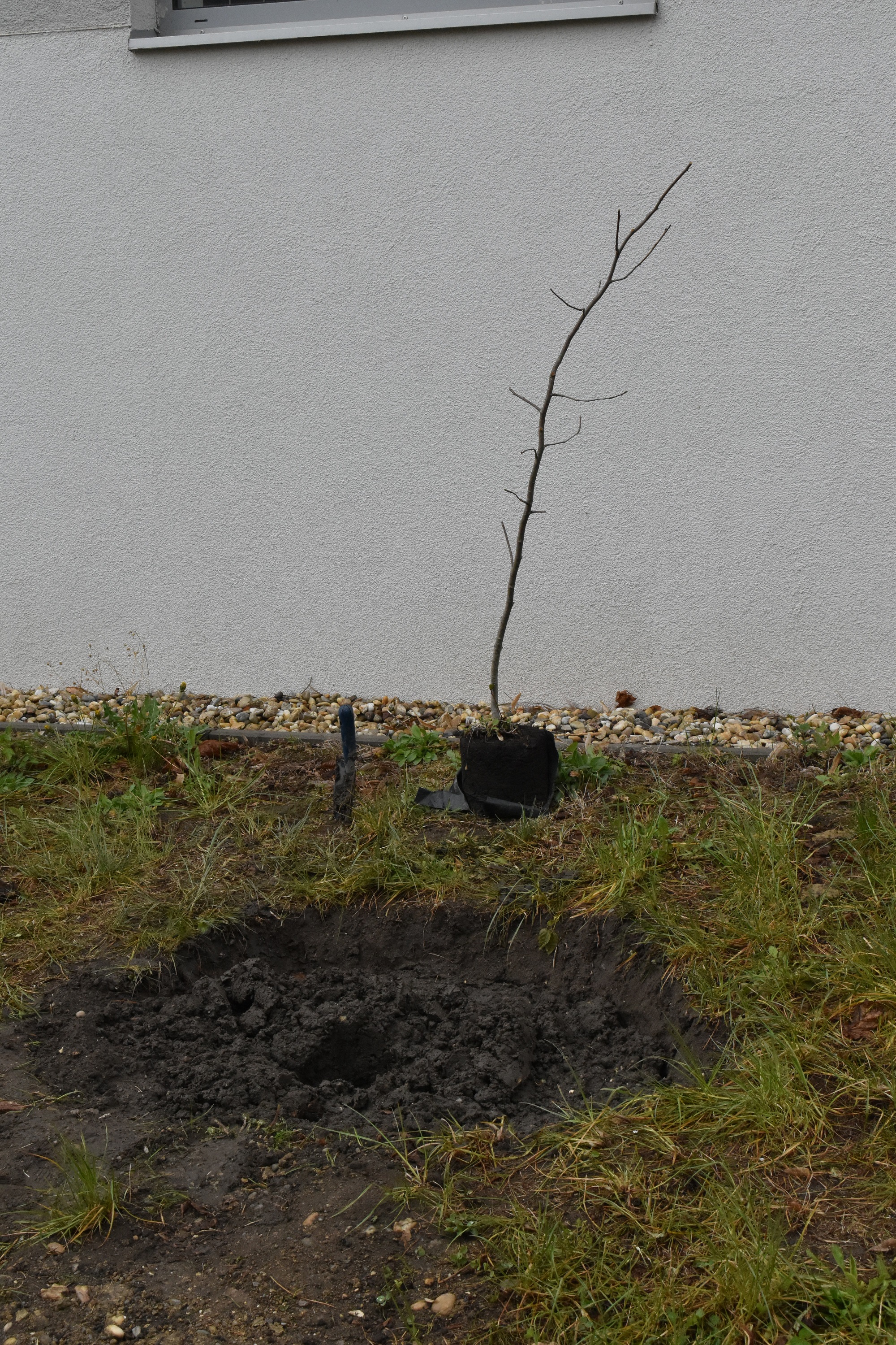 Az ültetést megelőző héten a DÖK-ösök - Staudt Petra, Erőss Alíz, Vecsernyés Nóra, Szloszjár Ajsa, Nagy Zóra és Makai Ádám, valamint a hozzájuk csatlakozó Taraczky Júlia és Tóth Balázs - nekiveselkedtek, és gödröt ástak, talicskáztak, talajt cseréltek, trágyáztak és iszapoltak, hogy ezen a kissé esős, szeles és szürke napon már tápanyagban gazdag, porhanyós föld várja otthonosan a két facsemetét.