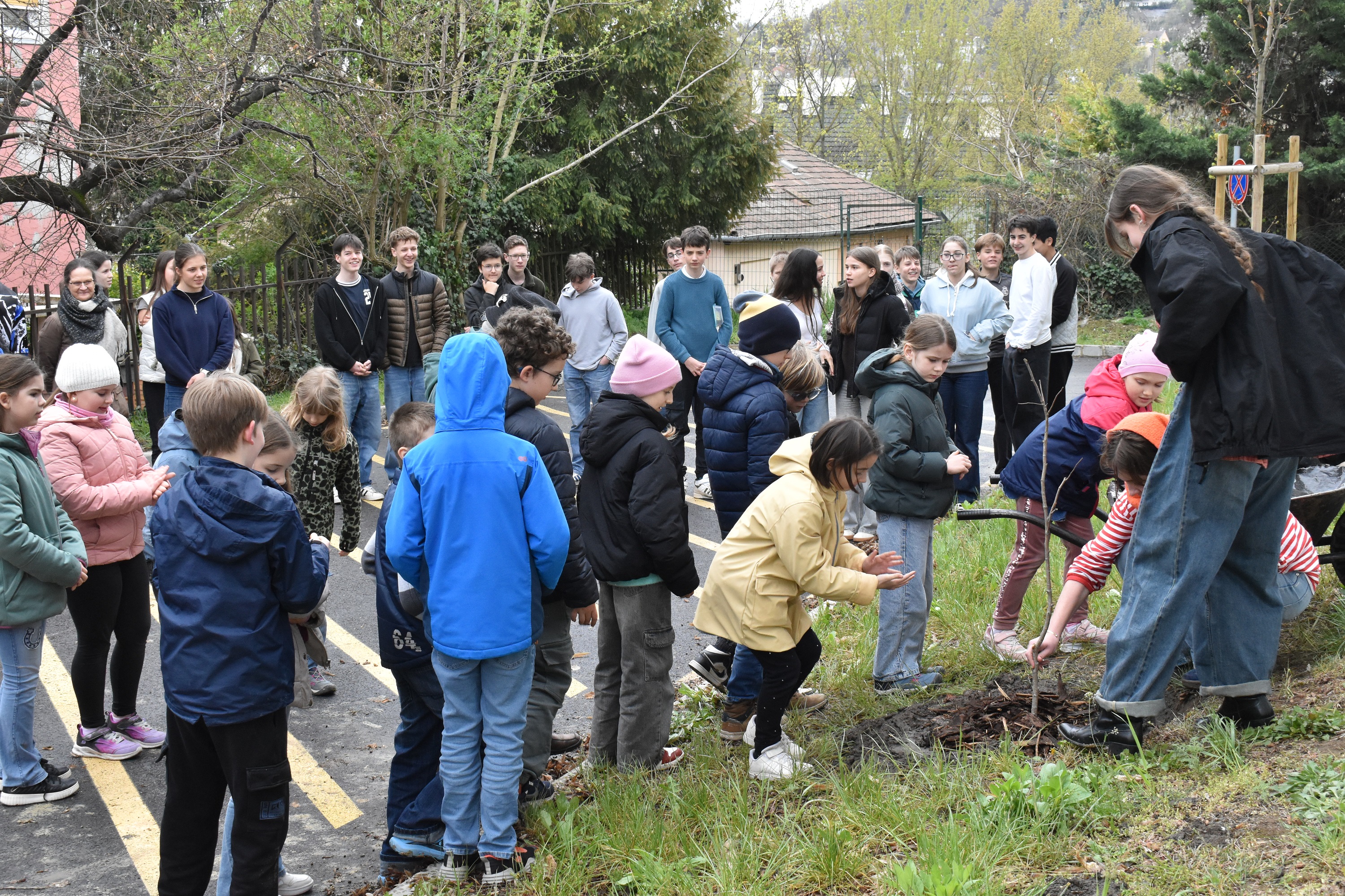 Március 30-án többhetes, gondos előkészületet követően valósult meg a Diákönkormányzat faültetési programja iskolánk új tornacsarnoka mellett. Az esemény során a Főkerttől ajándékba kapott két fiatal barkócaberkenye talált kertünkben végleges otthonra.
